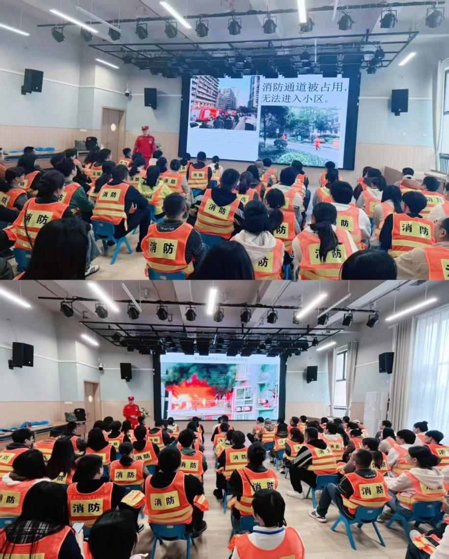 接着专业的消防教官为家长们带来了一场内容丰富、案例详实的安全知识讲座。讲座围绕儿童安全事故成因分析、家庭火灾隐患识别、车内逃生技巧、高层建筑逃生自救常识及消防器械正确使用等核心内容展开,结合社区常见火灾案例深入浅出讲解,家长们认真聆听、积极互动,安全防范意识与应急处置能力得到有效提升。